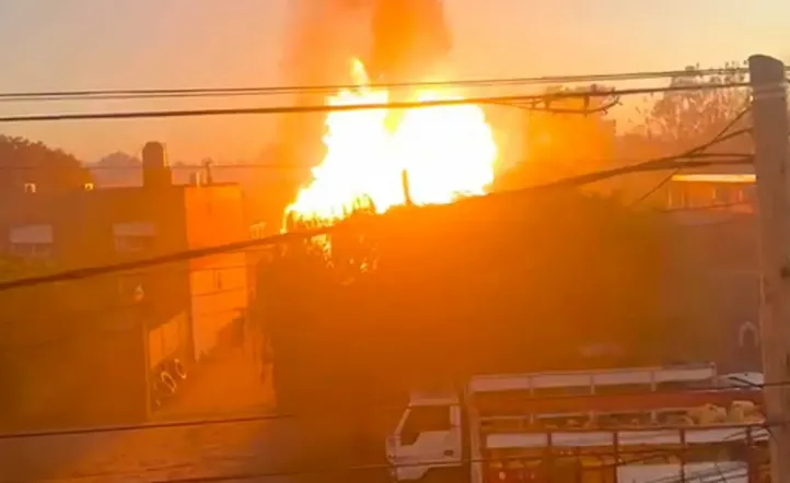 Se incendió un depósito en Mariano Acosta: explotaron y volaron cientos de garrafas y hay cuatro heridos