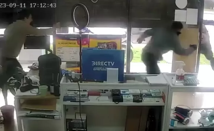 Ocurrió en un local de electrónica en la localidad de Lisandro Olmos, en una avenida y a plena luz del día. Todo quedó grabado por las cámaras de seguridad. “Dispararon dos veces, pero no les salió la bala”, dijo una de las víctimas.