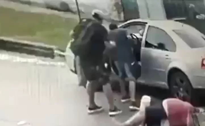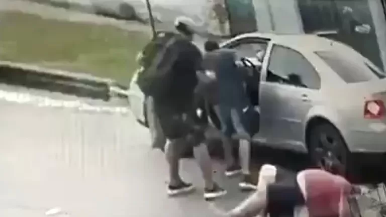 Como muestra el video que circula por las redes sociales, los ladrones quisieron robar el vehículo de la mujer que dialogaba con la víctima al momento del ataque. SIn embargo, la testigo precisó que se dieron a la fuga porque “sonó la alarma, se asustaron y se fueron”.