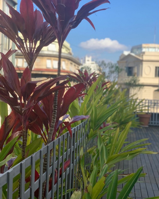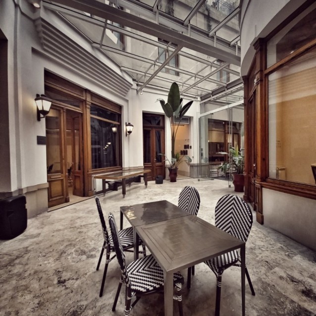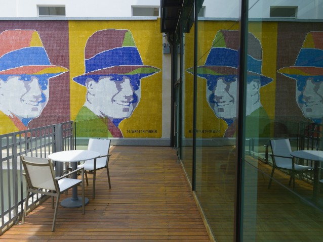 La terraza es un espacio de relax de esos que se cuentan con los dedos de una mano. Está protagonizada por un maravilloso mural de mosaico veneciano firmado por el renombrado Marino Santa María, desde donde un Gardel Pop nos sonríe por triplicado.
