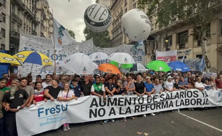La convocatoria fue impulsada por el Frente de Sindicatos Unidos (FreSU), que reúne a distintos gremios y centrales sindicales, y tendrá como eje principal rechazar el proyecto que el oficialismo busca convertir en ley. La protesta comenzará al mediodía en el centro porteño y coincidirá con la sesión en la Cámara alta.
