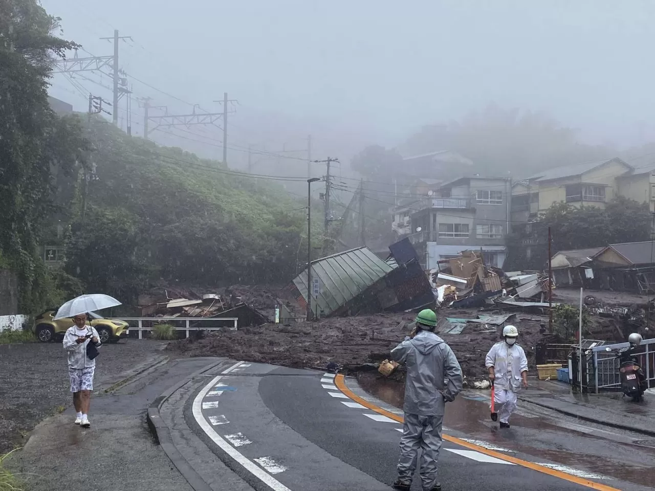 “Debido a la acción de lluvias torrenciales, el terreno cedió y saltó la avalancha. A su paso barrió casas y habitantes y cortó una carretera nacional”, informó la gobernación de Shizuoka al momento de confirmar que dos personas perdieron la vida y otra veintena todavía se encuentran desaparecidas por este deslizamiento.