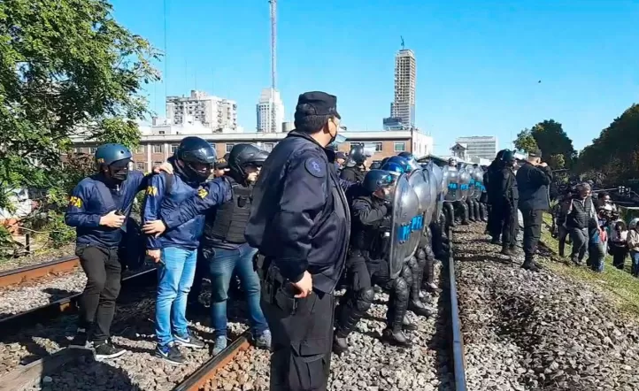Este jueves, la policía está intentando desalojar una protesta de trabajadores tercerizados del ferrocarril San Martín, a metros de la estación Palermo, que ya lleva más de seis horas.