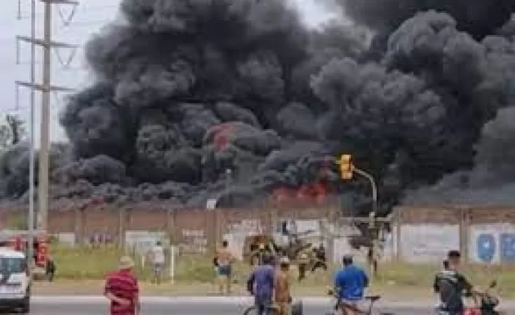 El foco se inició cerca de las 13 de este miércoles, en la estación donde la empresa “Visión Buenos Aires” guarda sus vehículos, ubicada en Camino General Belgrano y calle Santa Sofía, en el límite con la ciudad de Florencio Varela. Las columnas de humo negro y las llamaradas se podrían ver desde varios metros de distancia.