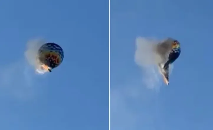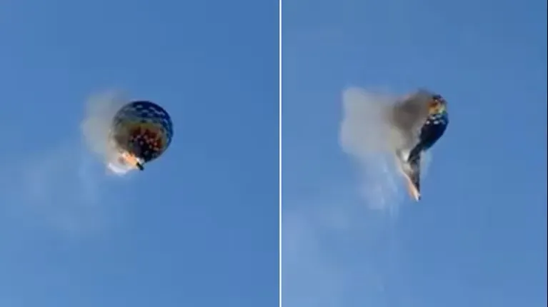 En redes sociales, comenzó a circular un video donde se ve al globo en el aire, envuelto en llamas. Segundos después, el globo se desinfla y cae abruptamente al suelo.