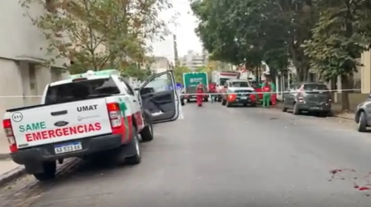 La brutal escena ocurrió en el cruce de la avenida Belgrano y Maza. Luego del violento episodio, los vecinos alertaron a la policía y junto a un patrullero llegó una ambulancia del SAME.
