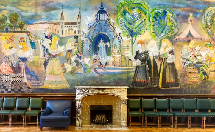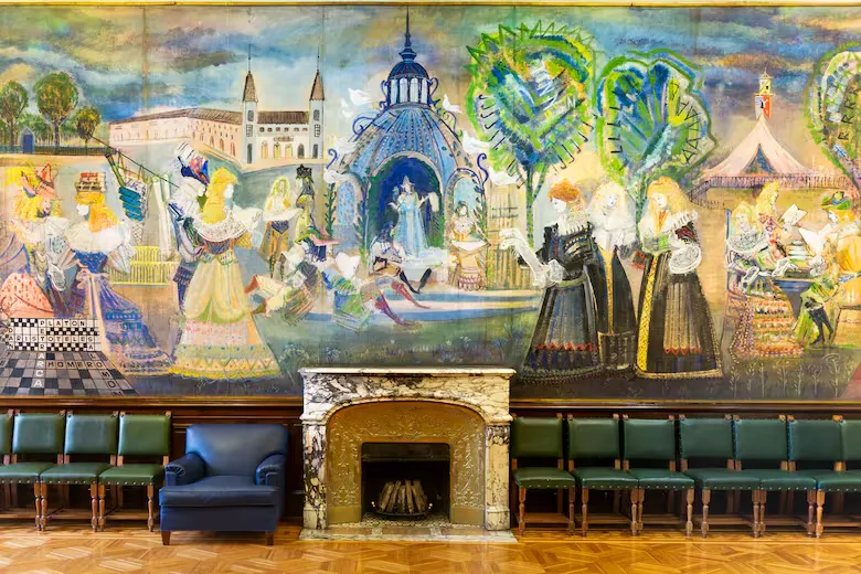 La sede del restaurante Croque Madame emplazada en el Colegio de Escribanos de la Ciudad de Buenos Aires guarda una joya artística de inconmensurable valor: un lienzo de 12 metros de largo y casi cuatro metros de alto que el gran maestro de la pintura argentina Raúl Soldi le donó al Colegio en 1972.