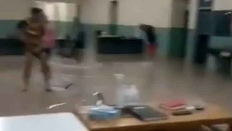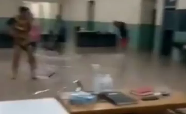 Al menos 4 aislados tuvieron que realizar las tareas de acondicionamiento, mientras también se percibía cómo acomodaron varios pupitres de costado para intentar formar una barrera que detenga el avance del agua hacia el resto del edificio escolar. El video fue publicado por el periodista Luis Gasulla.