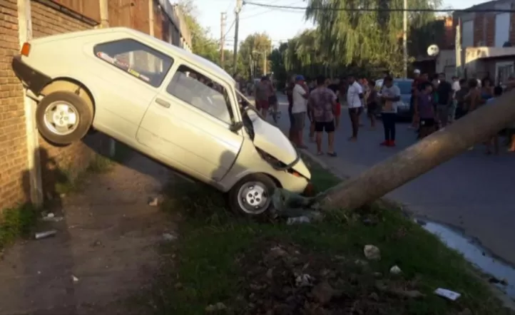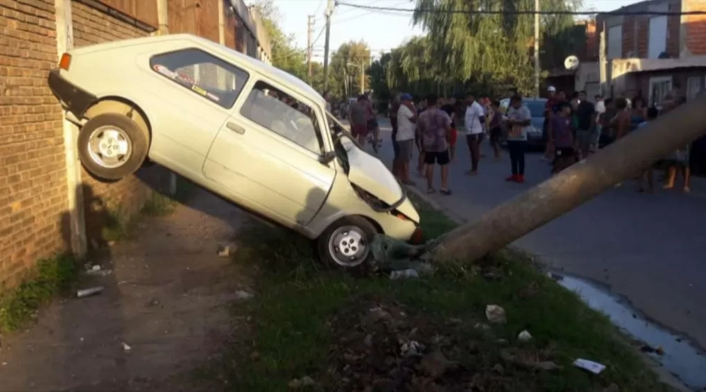 En tanto, el Fiat Spazio color blanco que conducía el adolescente quedó incrustado sobre la pared con las ruedas traseras a un metro del piso y su parte frontal sobre un poste de luz de cemento que volteó a raíz del golpe.