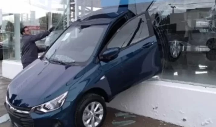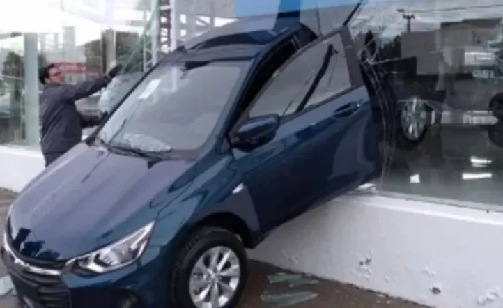 Un empleado de una concesionaria de autos de Chubut arrancó un Chevrolet 0 Km dentro del local y el auto terminó incrustado contra uno de los ventanales principales del lugar.