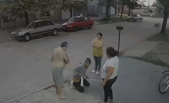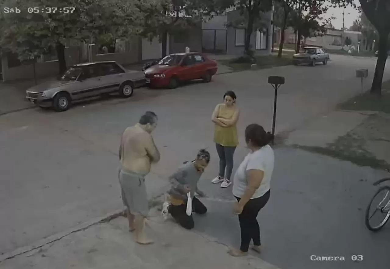En las imágenes que después se difundieron por las redes sociales se observa cómo el vecino empuja al delincuente hasta una cámara de vigilancia para que su cara se pueda ver con claridad y lo obliga a golpes a arrodillarse en el suelo y pedir disculpas por lo que acababa de hacer.