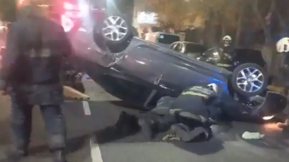 Un hombre chocó y volcó en Caballito y se fugó dejando a su acompañante atrapada en el auto
