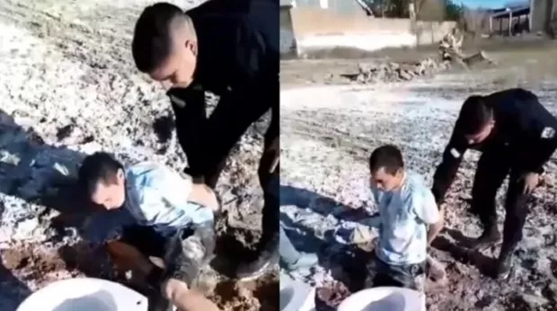 “Acá tengo uno que me quiso robar los inodoros”, dice la persona que grabó al delincuente. El joven, por su parte, trató de dar explicaciones, sin mucho éxito.