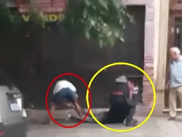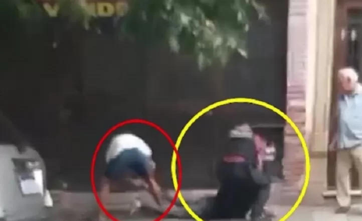 En las imágenes se deja ver el momento exacto en el que un joven le quita las zapatillas al otro que está reducido en el piso.