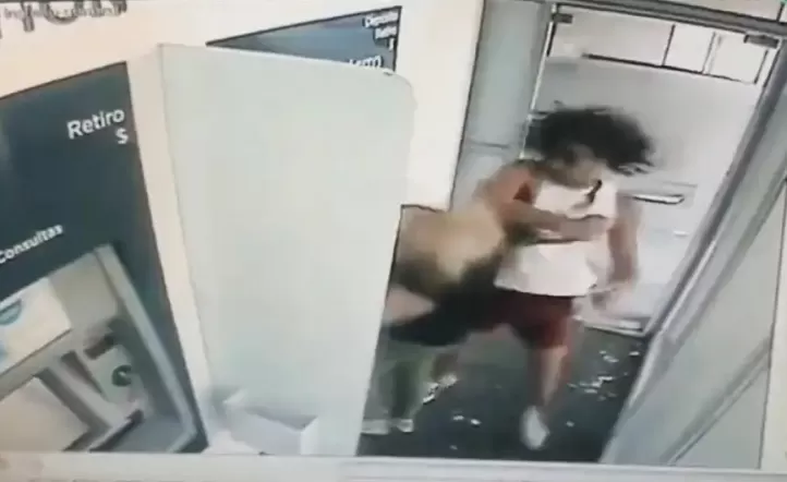 Las cámaras de seguridad del lugar captaron la brutal secuencia en la que se ve como la mujer se encontraba frente a la máquina cuando fue abordada por el delincuente que irrumpe en el lugar y la golpea en la cara sin mediar palabra.