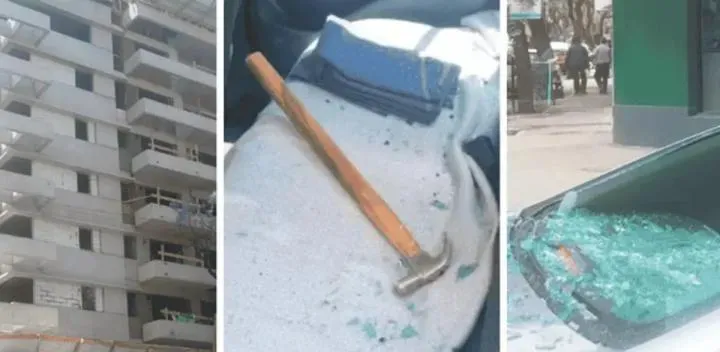 Un martillo que cayó del cielo casi mata a dos hombres que viajaban en un auto en Rosario: “Súper impactante”