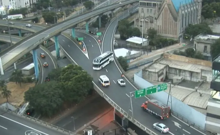 “Esta mañana se metió de contramano en la autopista. Cosas que pasan cuando están arreglando las calles, ¿no? Mirá, esta es la bajada desde la Autopista 25 de Mayo hacia la 9 de Julio Sur, pero que, en realidad, este colectivo la tomó como subida desde Constitución. Y entonces cuando llegó, contramano. ¿Esto por qué pasa? Porque la otra subida, la que tomás por 9 de julio para tomar la 25 de Mayo, para ir a la autopista Ricchieri, está cerrada por refacciones. Fijate las maniobras que tuvo que hacer este monstruo de dos pisos”, empezó explicando Luis Otero en Mediodía Noticias.