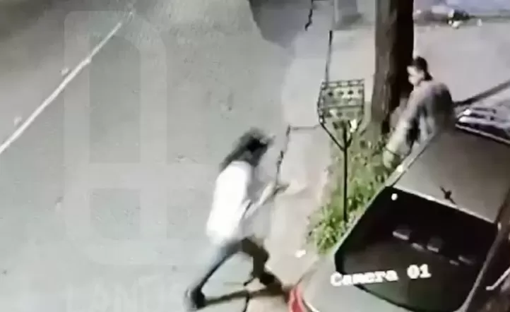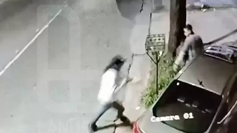 Ocurrió ayer a la madrugada. Las cámaras de seguridad captaron el momento del ataque a la víctima y los disparos que su suegro efectuó para disuadir a los ladrones.
