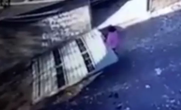 En las impactantes imágenes se puede ver como el pequeño Matías jugaba en la vereda cuando el portón de su casa se desvió del carril y cayó sobre él.