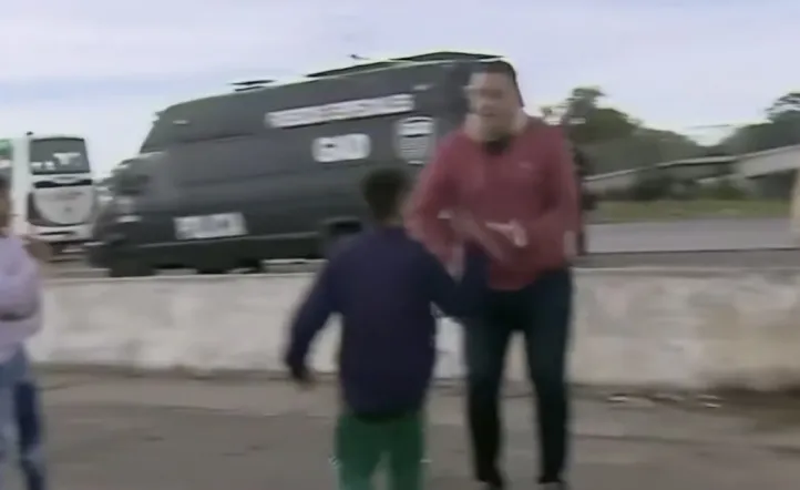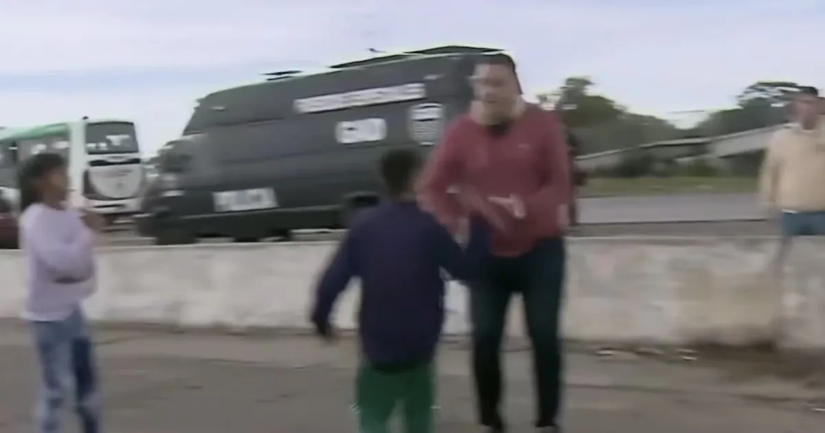 La imagen fue captada en vivo por los medios de comunicación que trasmitían desde el lugar, luego de que un chofer mostrara cómo les pedían dinero a los automovilistas para circular por esa traza.