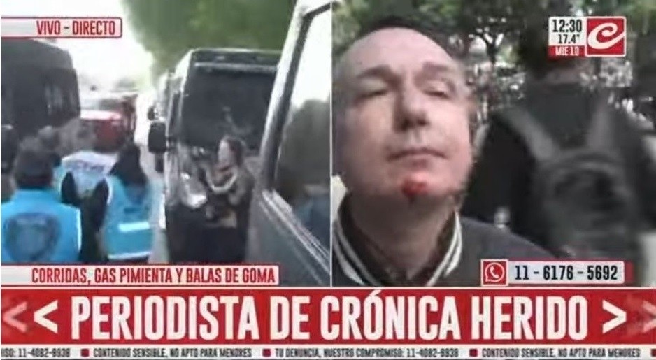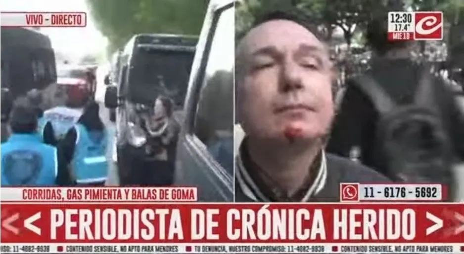Un periodista de Crónica recibió un disparo en la cara durante la represión policial en la 9 de Julio