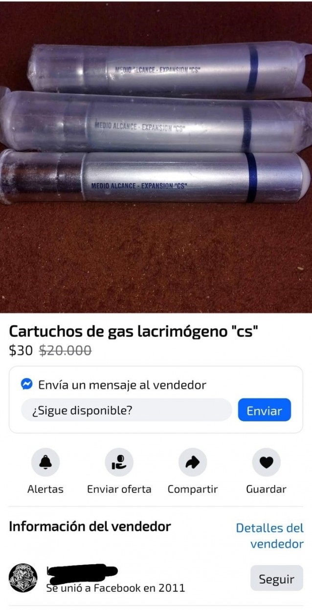 La Policía de la Ciudad de Buenos Aires detuvo a tres integrantes de una banda que se dedicaba a vender por Facebook Marketplace material sensible como granadas lacrimógenas, las cuales eran proporcionadas por un miembro de la policía bonaerense que las sacaba de contrabando.