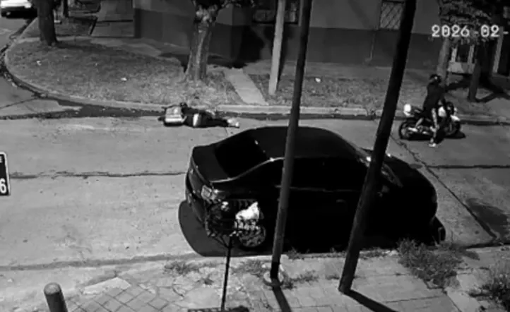 Uno de los delincuentes fue herido por las balas, y cuando volvió a subirse a la moto junto a su compañero para escapar, se desplomó. Ese momento fue grabado por las cámaras de seguridad.