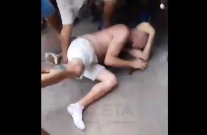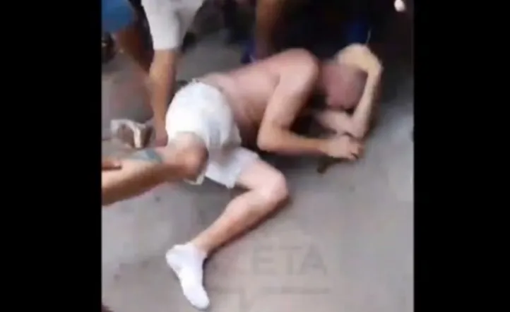 Tras una serie de piñas y patadas logran que el puestero caiga. Ahí, entre varios lo cargan y lo sacan del lugar para seguir agrediéndolo fuera de la oficina. Todo ante la férrea resistencia del hombre con torso desnudo que intenta cubrirse como puede de las agresiones.