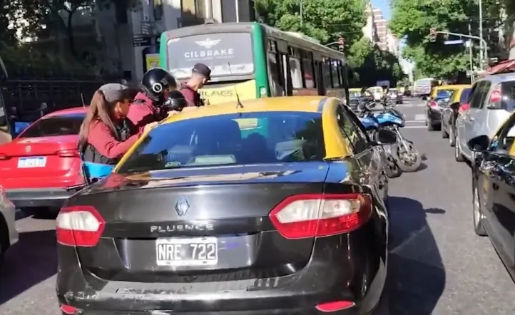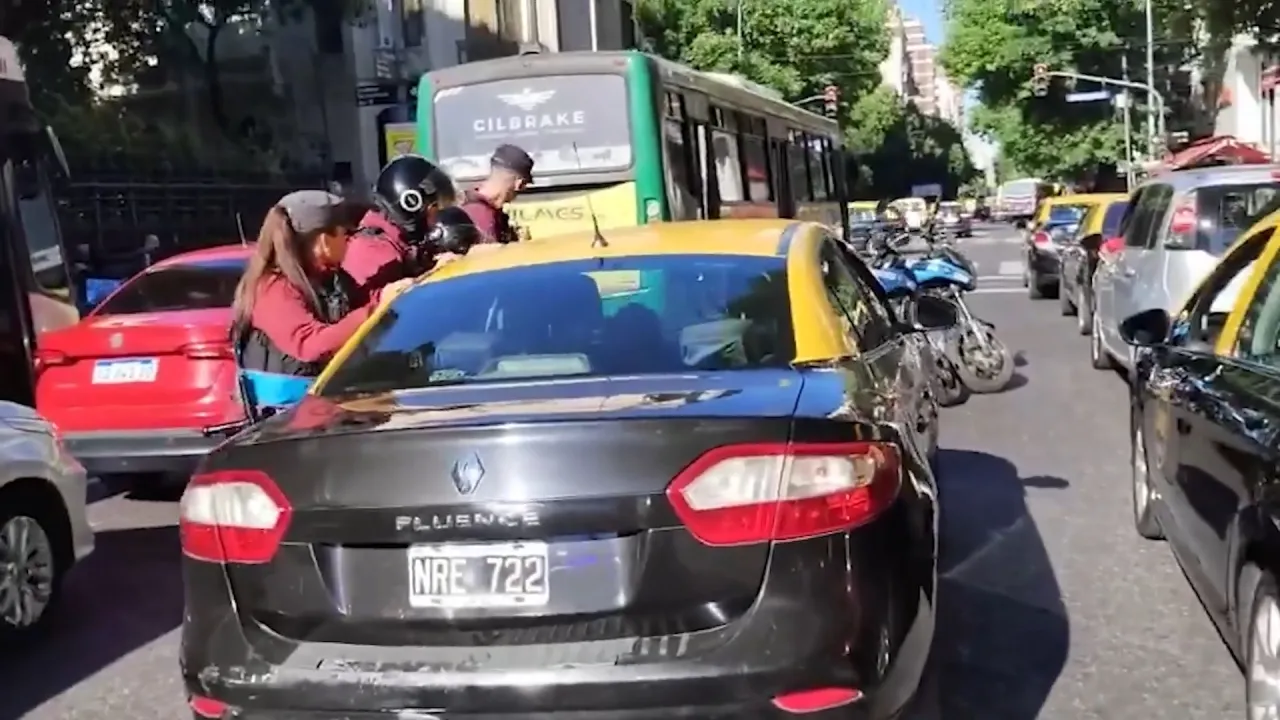 Un taxista se quedó dormido en medio de la Avenida Rivadavia y la Policía estuvo 20 minutos intentando despertarlo