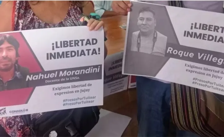 Nahuel Morandini, docente universitario, y Roque Villegas, trabajador independiente, están en prisión desde el pasado 4 de enero. Un fiscal los acusa de dañar psicológicamente a la esposa del exgobernador provincial, Gerardo Morales, y de cuestionar la identidad de la hija de dos años.
