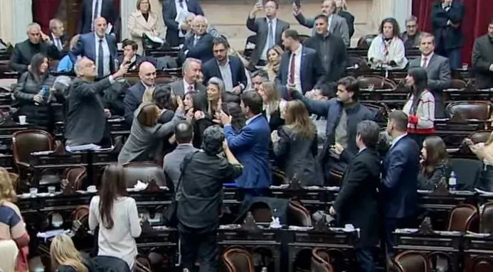 La situación obligó al presidente de la Cámara, Martín Menem, a intervenir junto al diputado Pablo Juliano, quien en ese momento estaba haciendo uso de la palabra. Ambos pidieron calma y que los legisladores retornen a sus bancas.