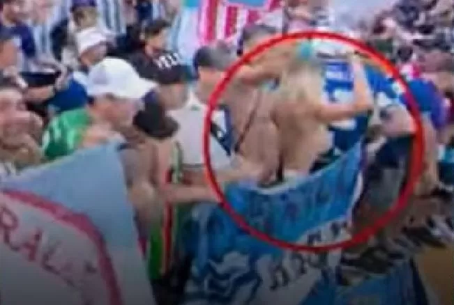 Una hincha argentina podría ir presa después de hacer topless en el Estadio Lusail.