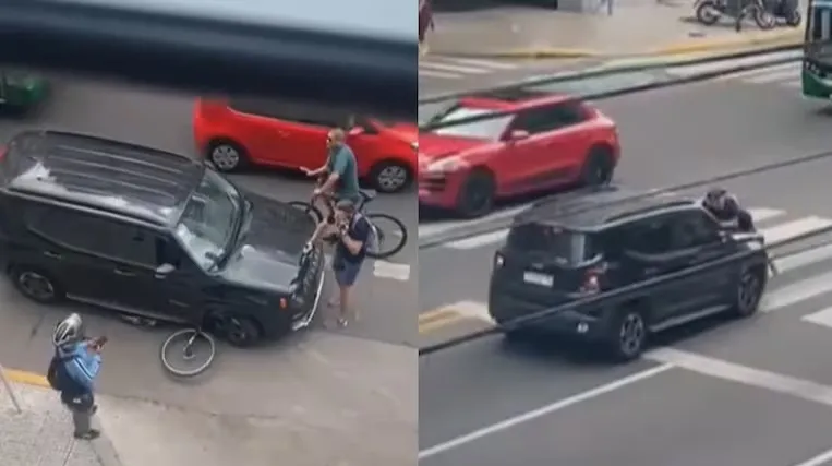 Un violento episodio ocurrió este viernes cerca del cruce de Avenida del Libertador y Olazábal, en el barrio porteño de Belgrano. Una joven de 22 años, de nacionalidad colombiana, chocó a un ciclista y lo arrastró sobre el capot de su camioneta durante aproximadamente 100 metros en un intento por escapar. El hecho quedó registrado en un video que se viralizó rápidamente en redes sociales.