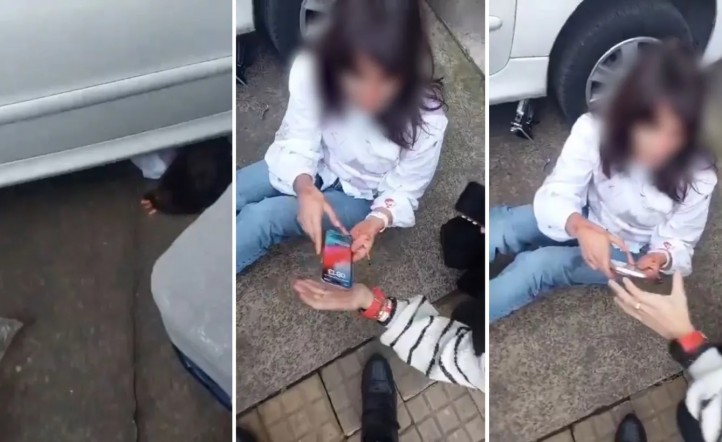 En el segundo, en tanto, se la puede ver ya liberada, con el rostro ensangrentado y heridas en la mano, aunque afortunadamente ya siendo asistida por el personal policial y los vecinos en el lugar.