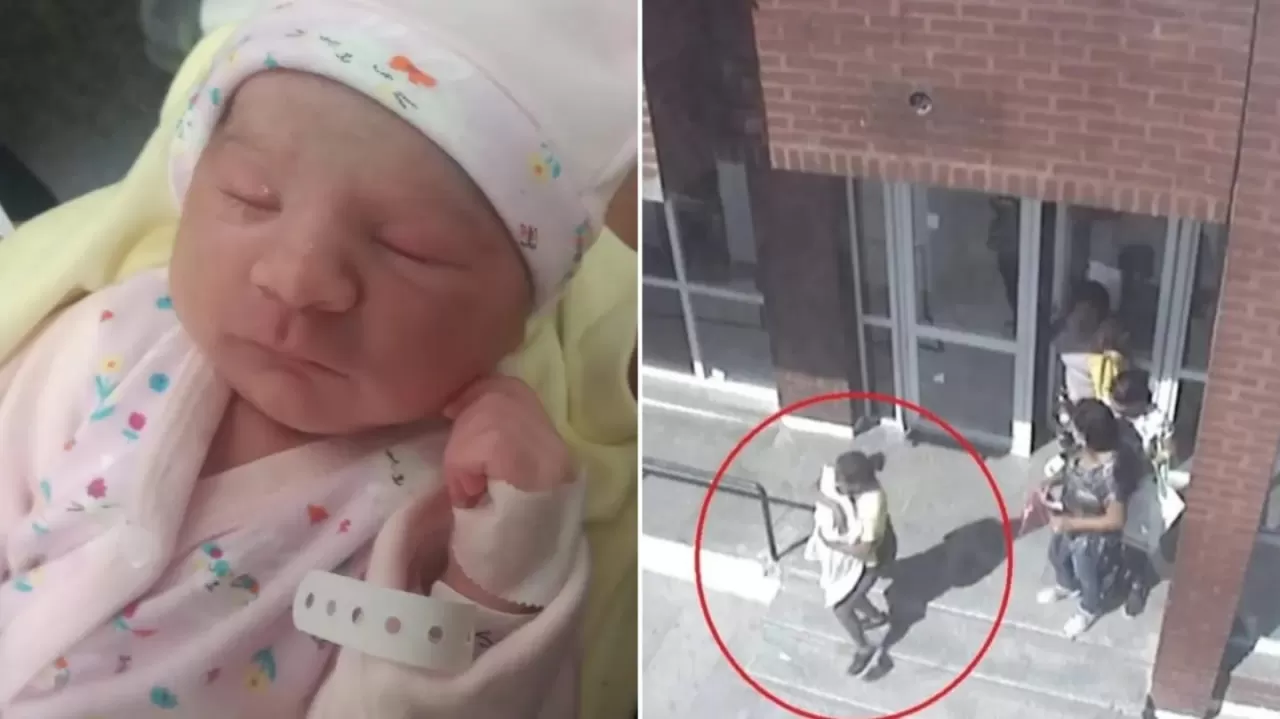 La pequeña Aylin Isabella Sandoval nació ayer y esta mañana fue apropiada en la localidad de Lomas de Zamora. La secuencia de la fuga quedó registrada por las cámaras del lugar.