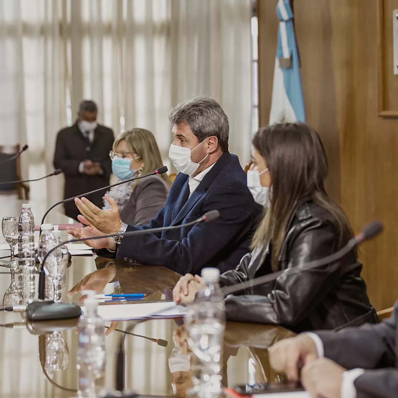 Durante la actividad, que tuvo lugar en la Sala Cerdera de Casa de Gobierno, acompañaron al gobernador sanjuanino, los ministros de Hacienda y Finanzas, Marisa López; de Turismo y Cultura, Claudia Grynszpan y de Producción y Desarrollo Económico, Andrés Díaz Cano, secretarios, subsecretarios , demás funcionarios del Poder Ejecutivo Provincial, cámaras y sindicatos vinculados a las actividades de Hacienda, Producción y de Turismo y Cultura.