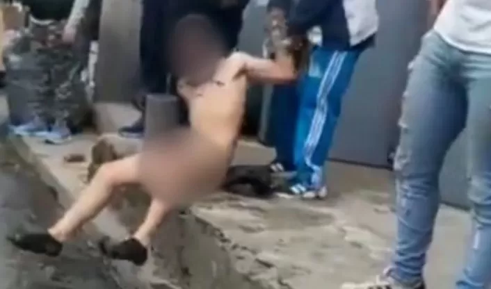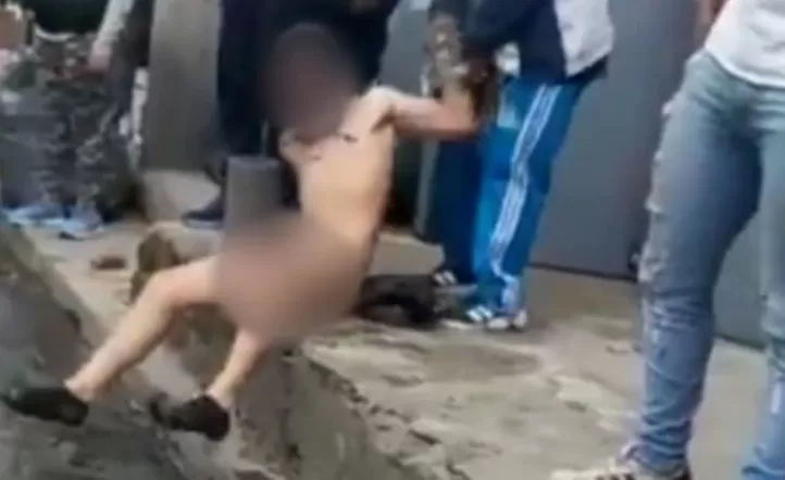 En las imágenes difundidas en las redes sociales se observa al ladrón ya despojado de su ropa y retenido por otros dos hombres en las inmediaciones al cruce de las calles Olavarría y Los Cedros. “Por robar”, se le escucha decir a quien filmó la secuencia, tras advertir que Fleitas tenía en su poder el celular Samsung.