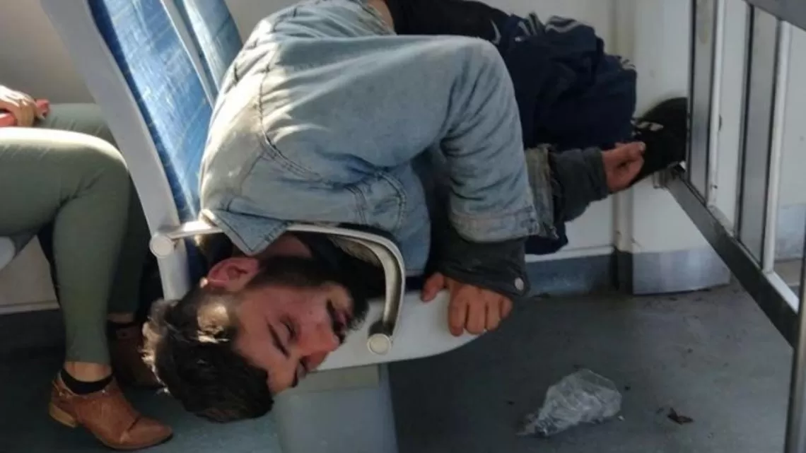 El insólito momento fue filmado por otros de los pasajeros, identificado como Juan Andrés, quien publicó la escena en su cuenta de Twitter. Las imágenes se viralizaron rápidamente y el video ya supera las 620 mil reproducciones. “Volviendo de la facultad se paró el tren 20 min porque a este hermoso muñeco se le quedó atorada la cabeza en el apoyabrazos. Gracias roquita, por suerte salió”, escribió el testigo.