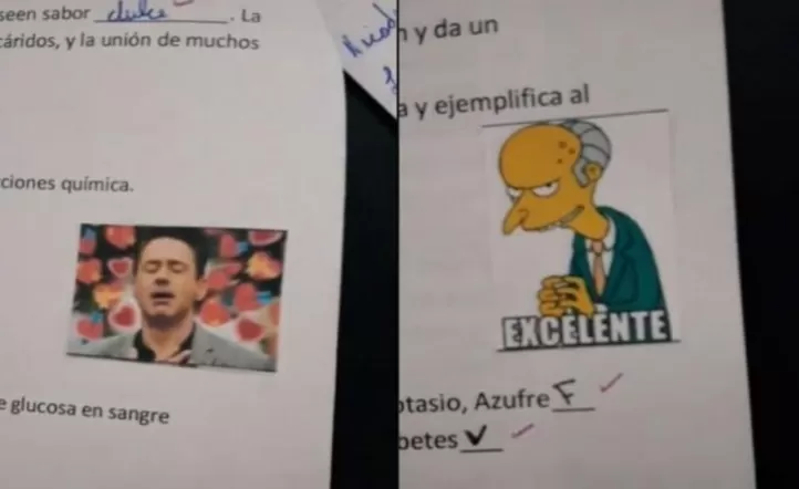 "Corrigiendo pruebas de mis alumnos con memes, para más placer", escribió la docente en el video y a simple vista se puede observar que los exámenes contenían imágenes de diferentes memes como “dice la profe que estudien esto porque la próxima les pone cero”. También se suma el Señor Burns de Los Simpson diciendo “excelente” o a la bebé de “Buena suerte Charlie” expresando “¡¿quee?!”.
