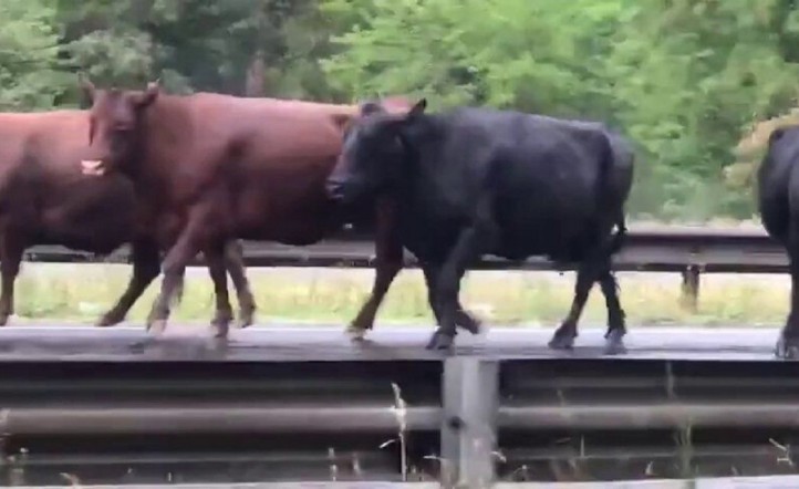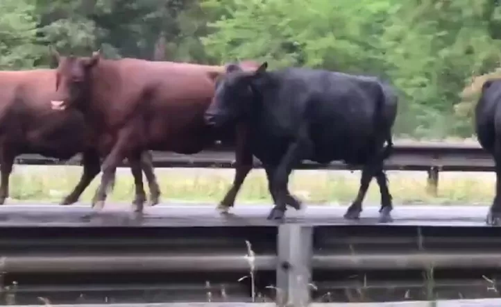 Un hombre que pasaba por el lugar con su vehículo se bajó del mismo y grabó el incidente, ante la atónita mirada de las personas que transitaban por allí y observaban la insólita escena con las vacas corriendo por el medio de la autopista y autos por detrás de ellas haciendo una especie de “arreo” de los animales.