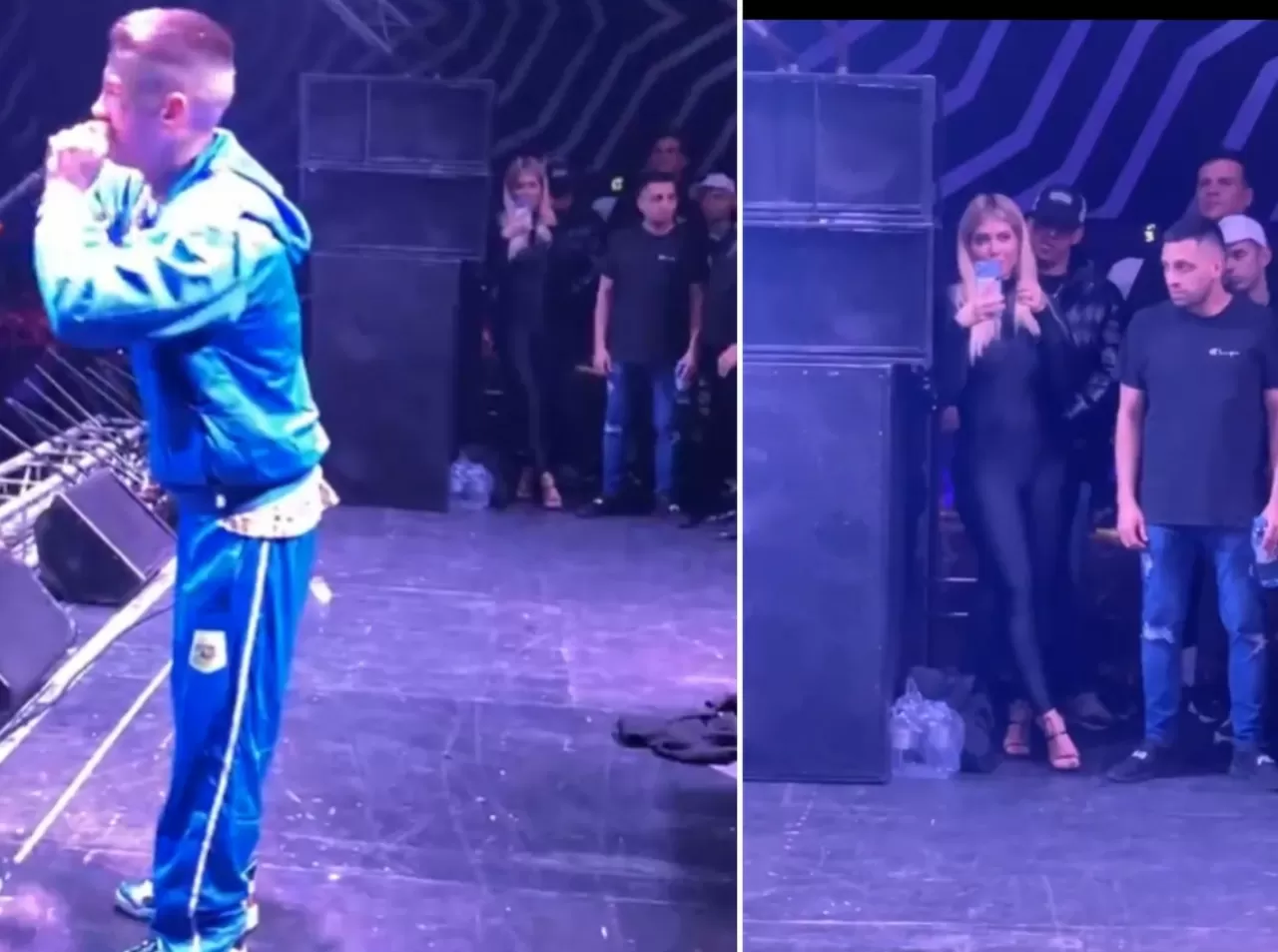 El referente de la cumbia 420 brindó un show en El Bosque. Allí estuvo acompañándolo la mediática que desde un costado del escenario filmó todo el show.
