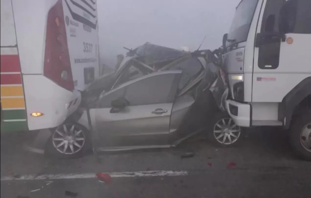 En el momento de la colisión, la visibilidad en la ruta era nula por la presencia de humo provocada por la quema de pastizales. El tránsito se encuentra cerrado en ambos sentidos. Los rescatistas aún se encuentran trabajando en sacar a las personas que quedaron atrapadas.
